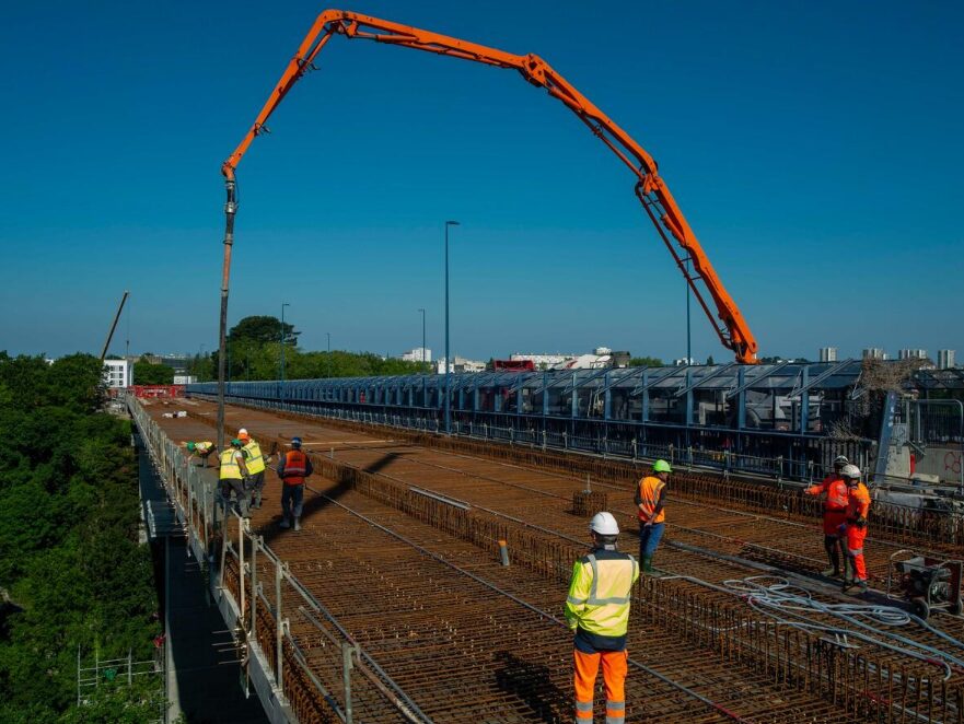 Après 17 mois de travaux confiés au Groupement ETPO (mandataire) – Eiffage métal, les travaux d’infrastructure ont pu débuter sur le nouveau pont pour accueillir le passage du Tram.
