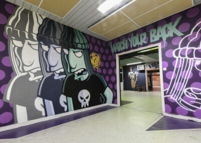 Afin d’accompagner cette étape importante dans la vie de la commune et en partenariat avec l’association « Projet 00 », BMa a donné carte blanche à quinze artistes pour s’approprier les lieux et produire une récréation street artistique au sein de l’établissement. Pendant plusieurs semaines, les artistes ont envisagé l’espace, apprécié la forte dimension symbolique du lieu, puis graffé en toute liberté sur chaque surface offerte à leur imagination.
